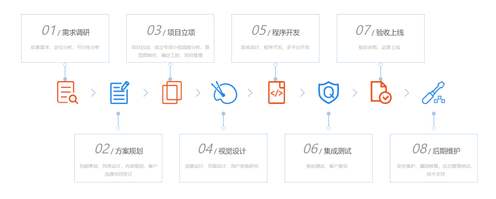 为企业提供 APP 的定制化服务,包括APP产品调研、需求分析、UE、UI设计、开发、测试、部署上线等一系列解决方案